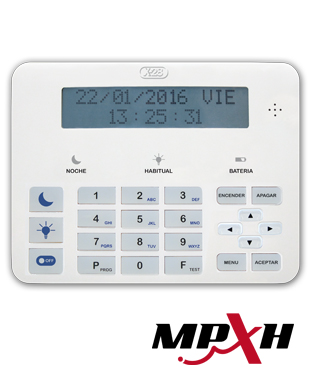 Teclado para el manejo de una instalación de automatización. Todos los mensajes del sistema en el display. Teclas de ambientación Noche y Habitual. Tecla de apagado de todos los nodos. Asistencia por voz de todos los mensajes del sistema.